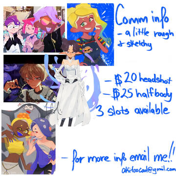 Hello, I'm Aki. I like splatoon (crazy ik) I also like things like zelda, persona, minecraft, fnaf, tally hall, and hylics. I'm an artist and I draw things, below you'll find my commission status and info. You can also find my socials.